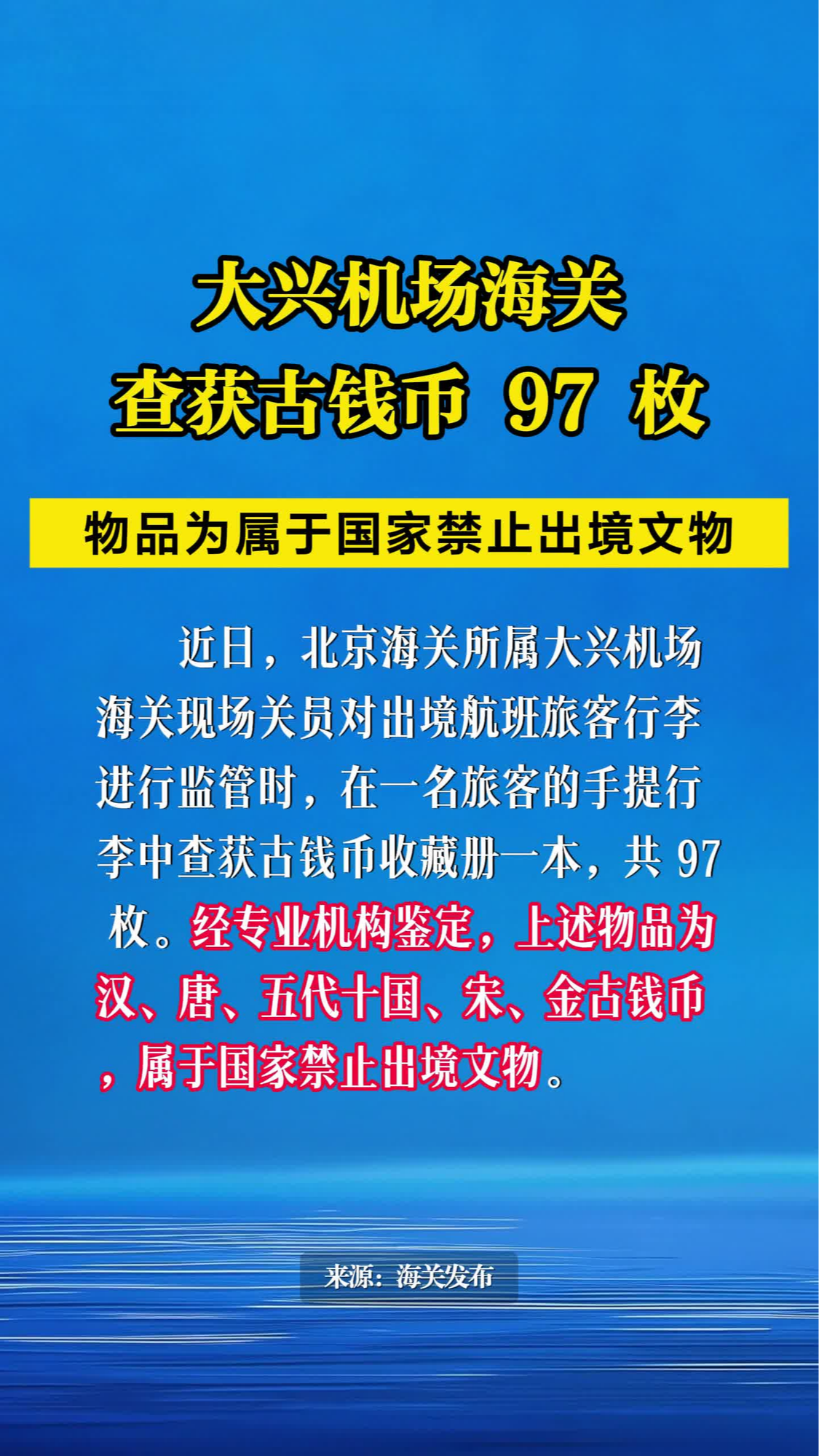 大興機場海關查獲古錢幣97枚
