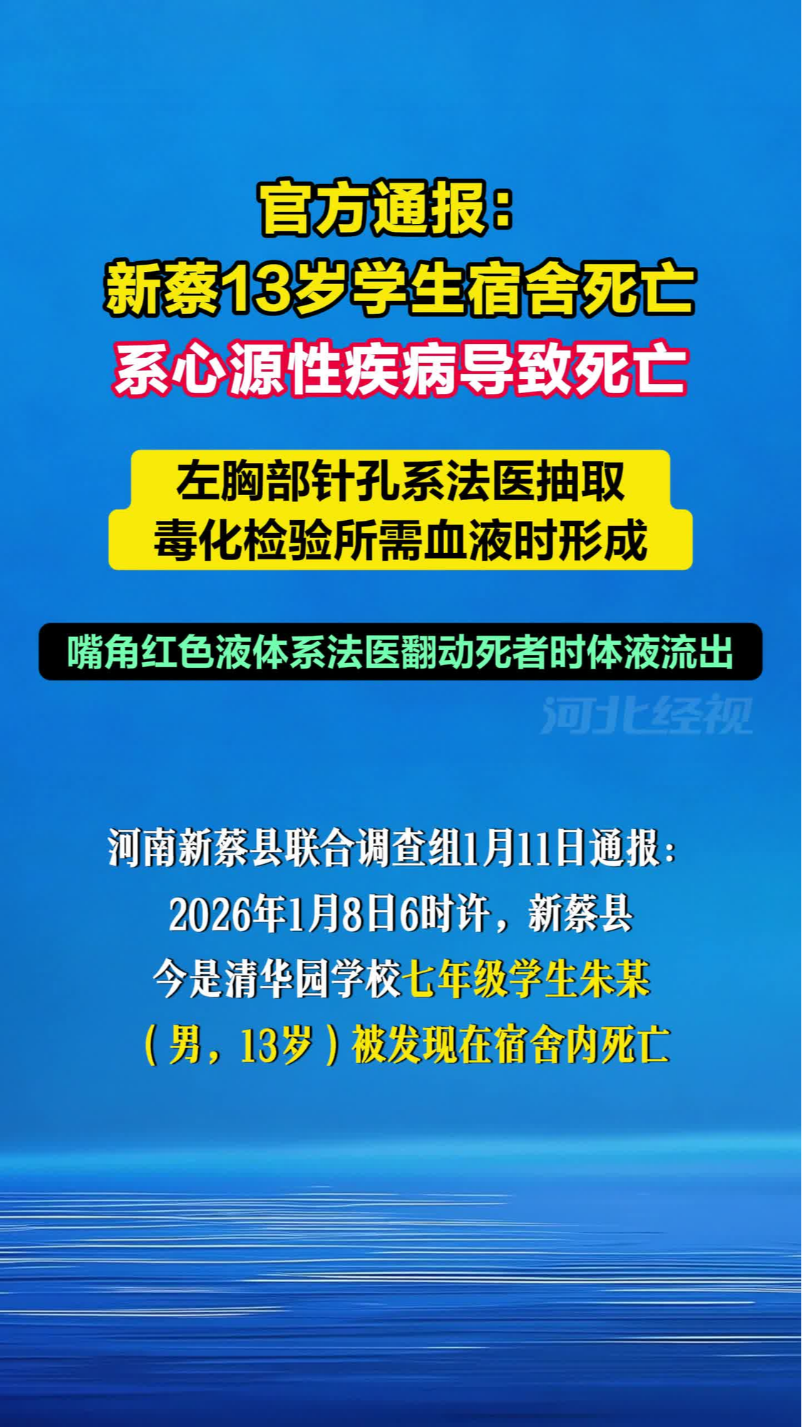 河南新蔡縣通報“13歲學生宿舍內死亡”事件