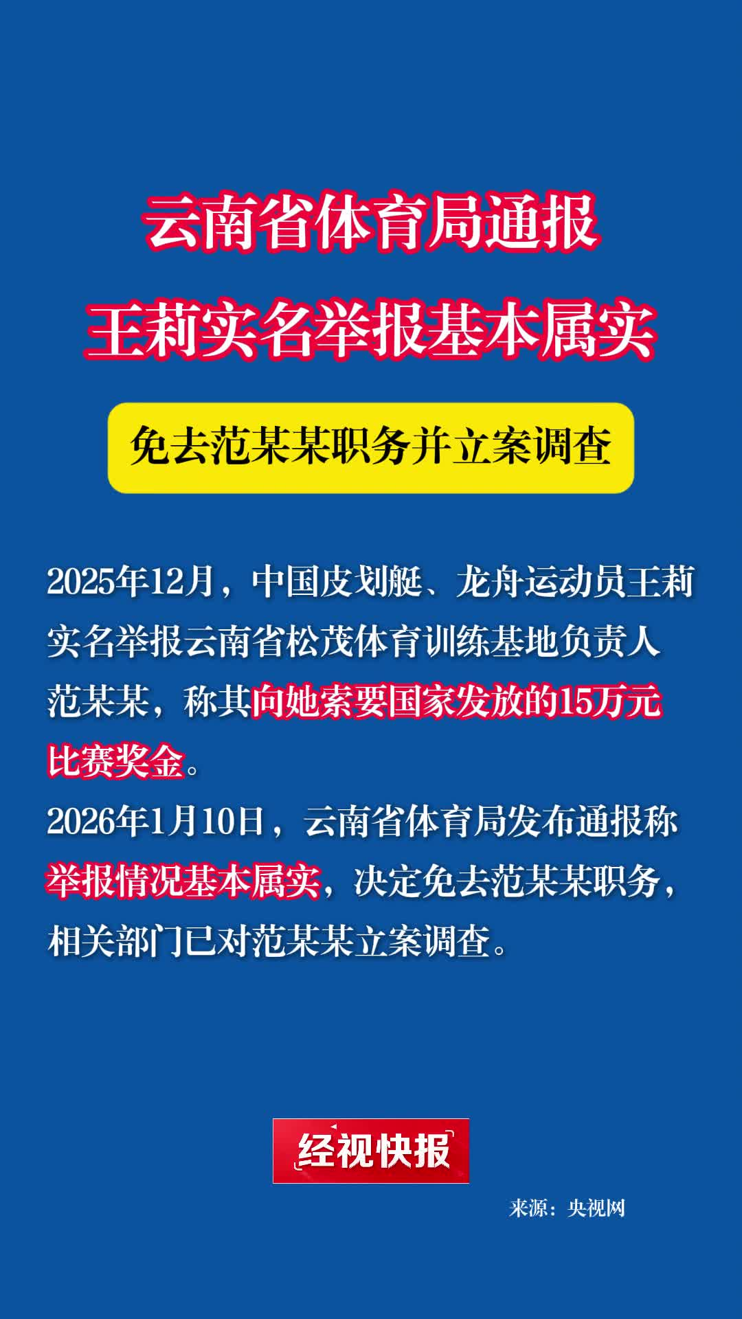 云南省體育局回應王莉實名舉報