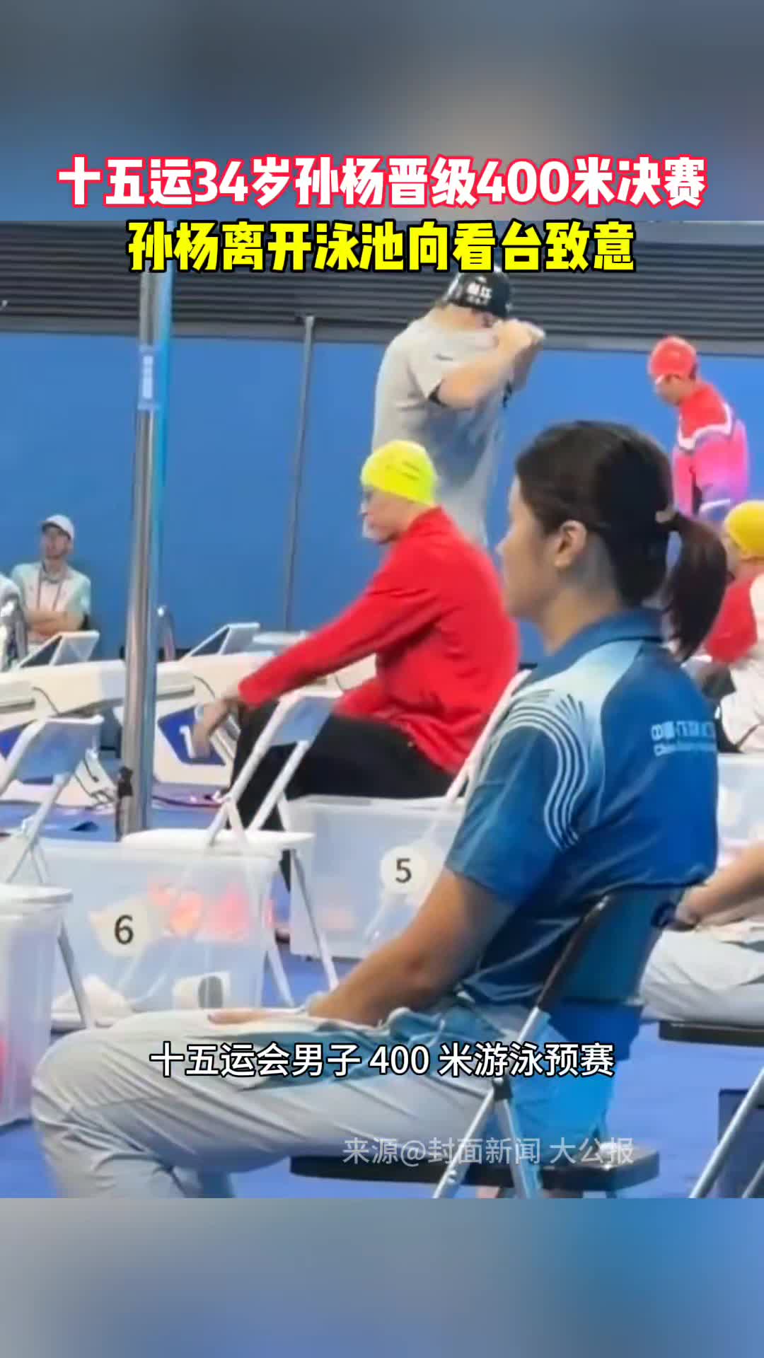 十五運34歲孫楊晉級400米決賽,孫楊離開泳池向看臺致意!
