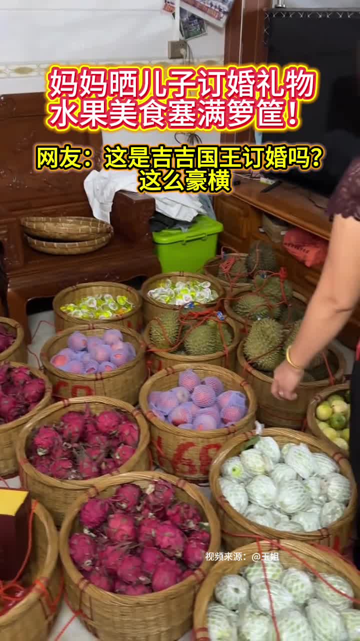 媽媽曬兒子訂婚禮物,水果沒事塞滿籮筐!