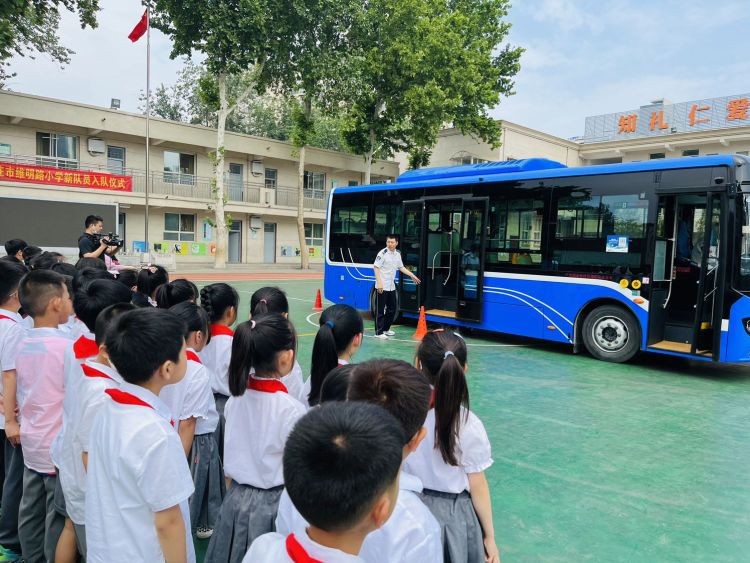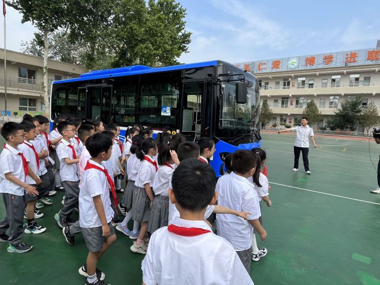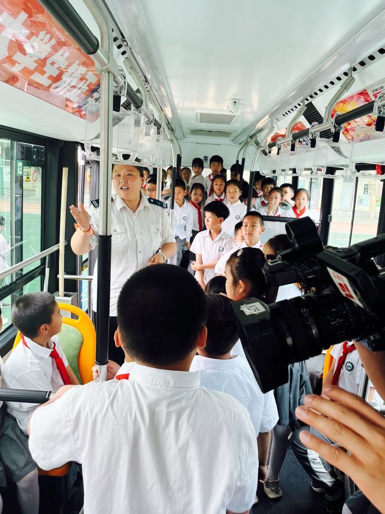 公交集團(tuán)工作人員把公交車開進(jìn)校園,現(xiàn)場模擬視野盲區(qū),一線車長講解如何使用安全錘、滅火器等內(nèi)容,讓孩子們體驗了一堂沉浸式安全課。