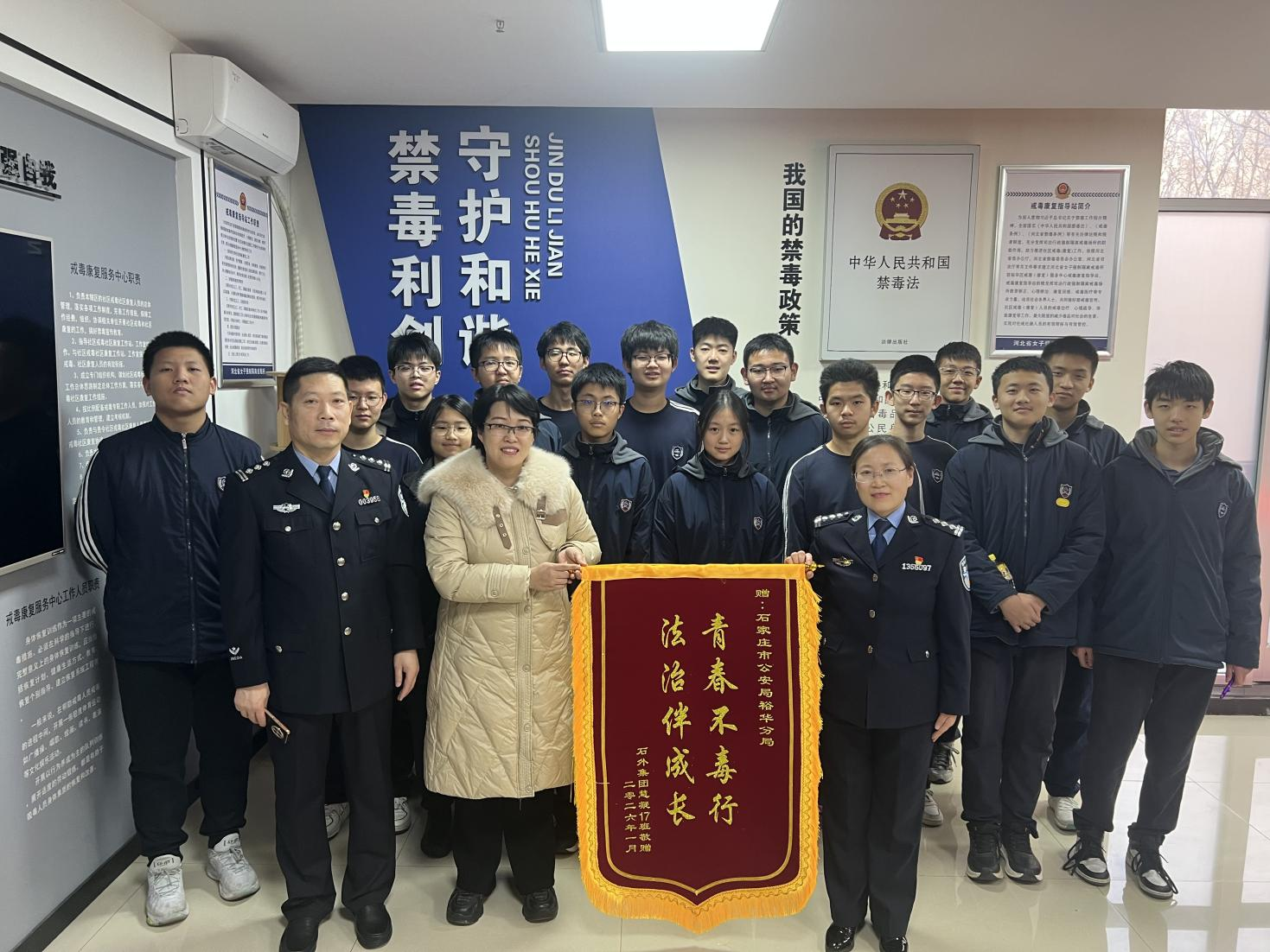 為切實強化青少年毒品預防教育,筑牢校園安全防護網,2026年1月31日,石家莊外國語教育集團九年級17班的同學們懷著敬畏之心,走進石家莊市裕華區禁毒教育基地,在民警的專業引領下,上了一堂深刻且生動的“抵制毒品,守護成長”主題教育課。