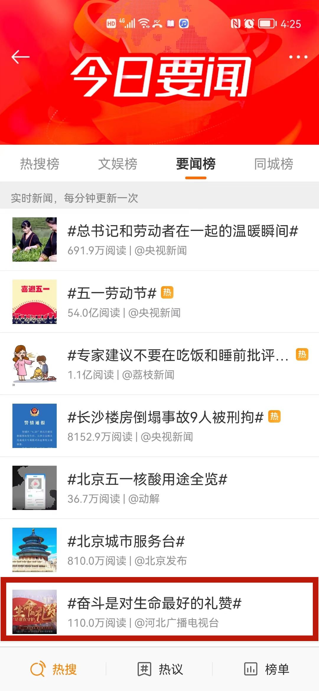 節目內容豐富“接地氣”,開播之后引發強烈關注,新華云直播、新浪新聞等平臺還對直播進行了重點推薦,全網觀看量迅速突破700萬,“奮斗是對生命最好的禮贊”相關話題閱讀量近120萬,微博熱搜要聞榜全國排名第七位。