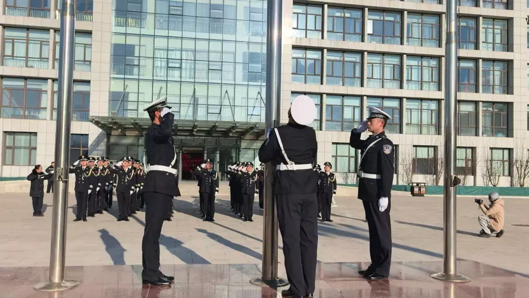 支隊機關率先舉行莊嚴儀式。全體民輔警身著警服整齊列隊,在雄壯的國歌聲中向冉冉升起的五星紅旗莊嚴敬禮。隨后,鏗鏘有力的入警誓詞再次響徹警營,一字一句,重托在肩。儀式在激昂的《人民警察之歌》合唱中達到高潮,澎湃的旋律抒發了對公安事業的無限熱愛與赤誠。