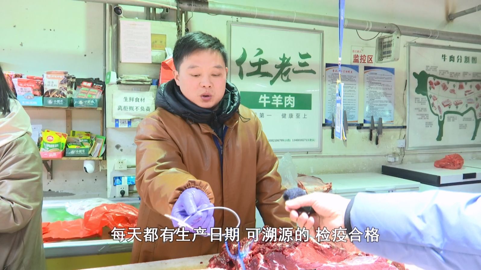 豬肉市場供銷兩旺,價格較前期穩中有降。經營戶介紹,當前豬肉售價在 8-9 元 / 斤,較節前有所回落,得益于充足的市場供應。不少市民批量采購年貨,有顧客一次性購買七八十斤排骨、豬腳等食材,用于制作臘腸、壓豬頭肉等傳統年食。牛肉價格則保持穩定,現價 32 元 / 斤,與上月持平。各商戶肉類產品均附帶檢疫合格證明可溯源,大家可以放心購買。