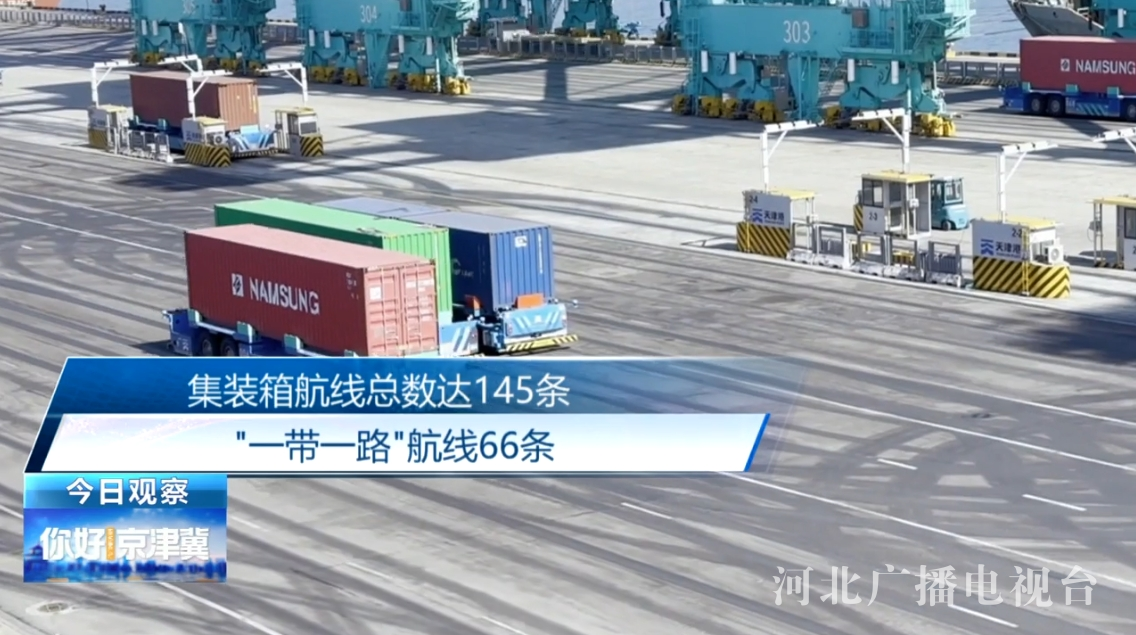 一灣碧水,數座港口,是京津冀通達全球的海上門戶。作為世界十大港口之一,2023年天津港開通多條新航線,集裝箱航線總數達145條,其中"一帶一路"航線66條。2023年天津口岸共發運中歐(中亞)班列711列,60%以上外貿貨物來自"一帶一路"共建國家,持續推動著京津冀對外開放水平不斷提升。