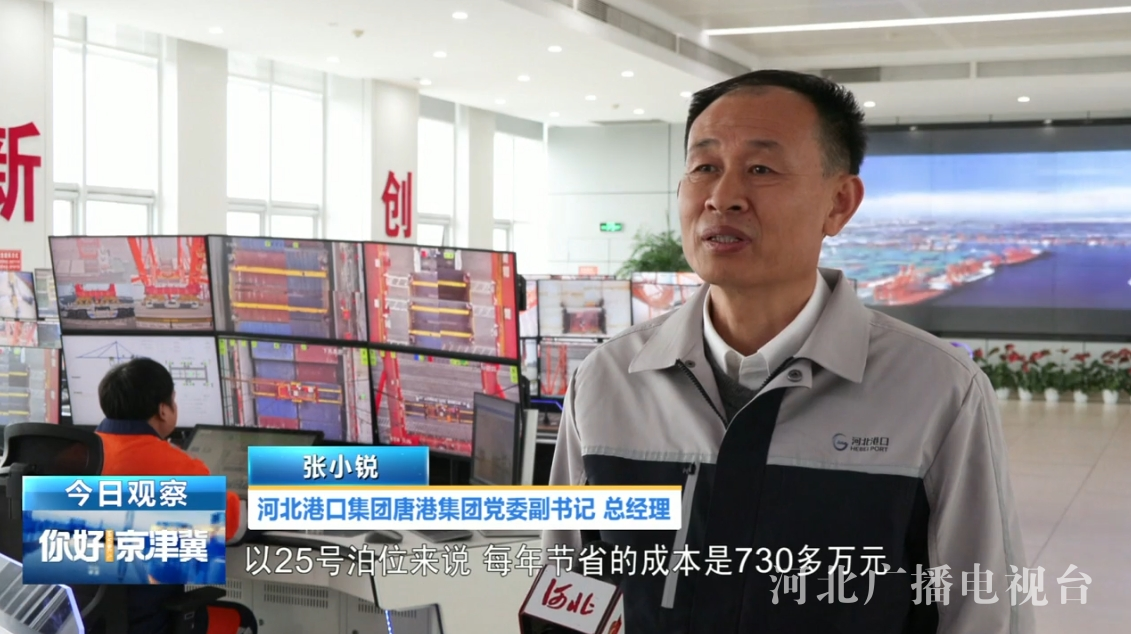 河北港口集團唐港集團黨委副書記 總經理 張小銳:以25號泊位來說,每年節省的成本是730多萬元,操作人員也減少了75%,每萬標箱綜合能耗也比國家標準先進值還低21%。