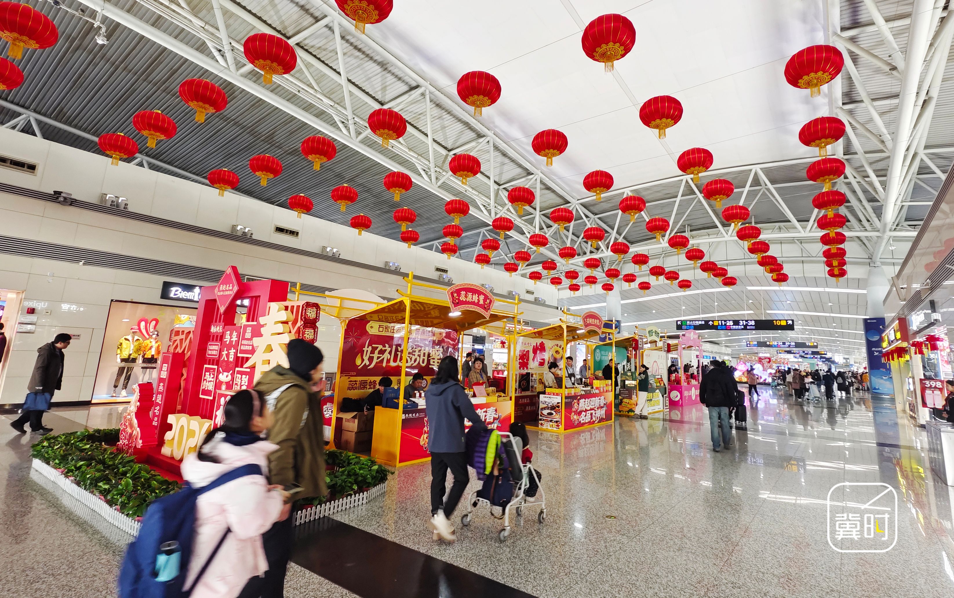 春運期間,機場還將化身充滿年味的“新春驛站”。機場巴士內(nèi),窗花點綴車窗、中國結(jié)懸掛行李架;機場場區(qū)高架道路、停車場懸掛“平安回家”“歡迎回家”主題元素景觀,1、2號環(huán)島LED屏滾動新春寄語。同時,航站樓也是年味十足,核心動線懸掛 300 余盞燈籠;AB、BC安檢通道前“金橘樹”“錦繡紫春”景觀相映成趣,C值機島旁“新年許愿”墻成為旅客打卡熱點;2、3號門“福馬迎新年”主題門頭喜氣洋洋;值機大廳、候機區(qū)、到達夾層的4處主燈籠展示區(qū),同步推出馬年專屬登機牌,讓旅客在便捷出行的同時,邂逅新春驚喜。