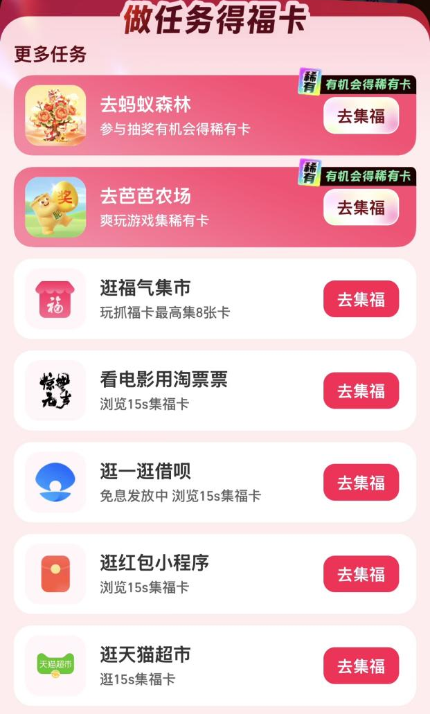 總結:每日掃“福”+掃“馬”保底獲得11張福卡,再用碰一下、做任務補卡,組隊沖稀有卡,這樣操作下來,很快就能集齊6套福卡。