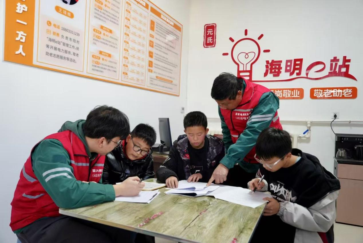 國網元氏縣供電公司工作人員在東陽村“海明e站”輔導村里兒童寒假作業。馬研文 攝