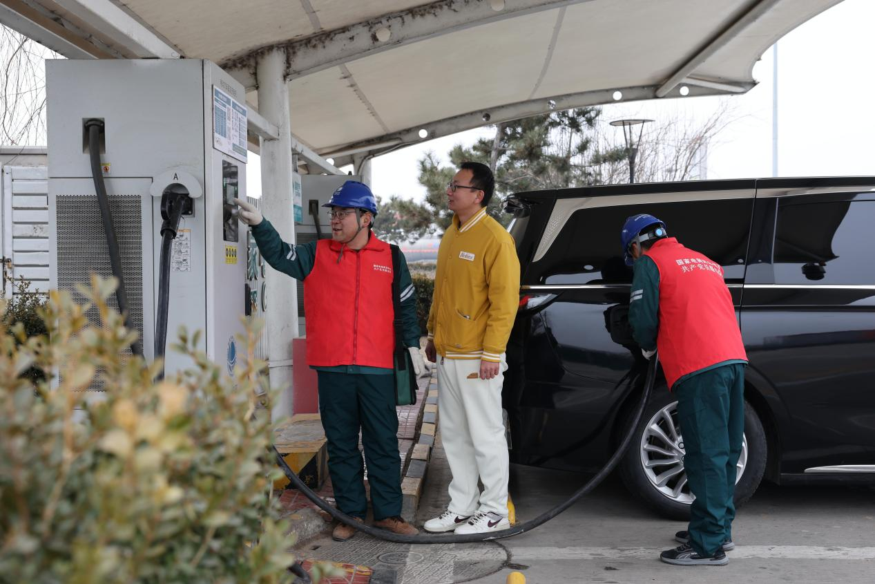 國網鹿泉區供電公司工作人員到青銀高速石家莊南服務區為新能源車主講解充電注意事項。康偉 攝