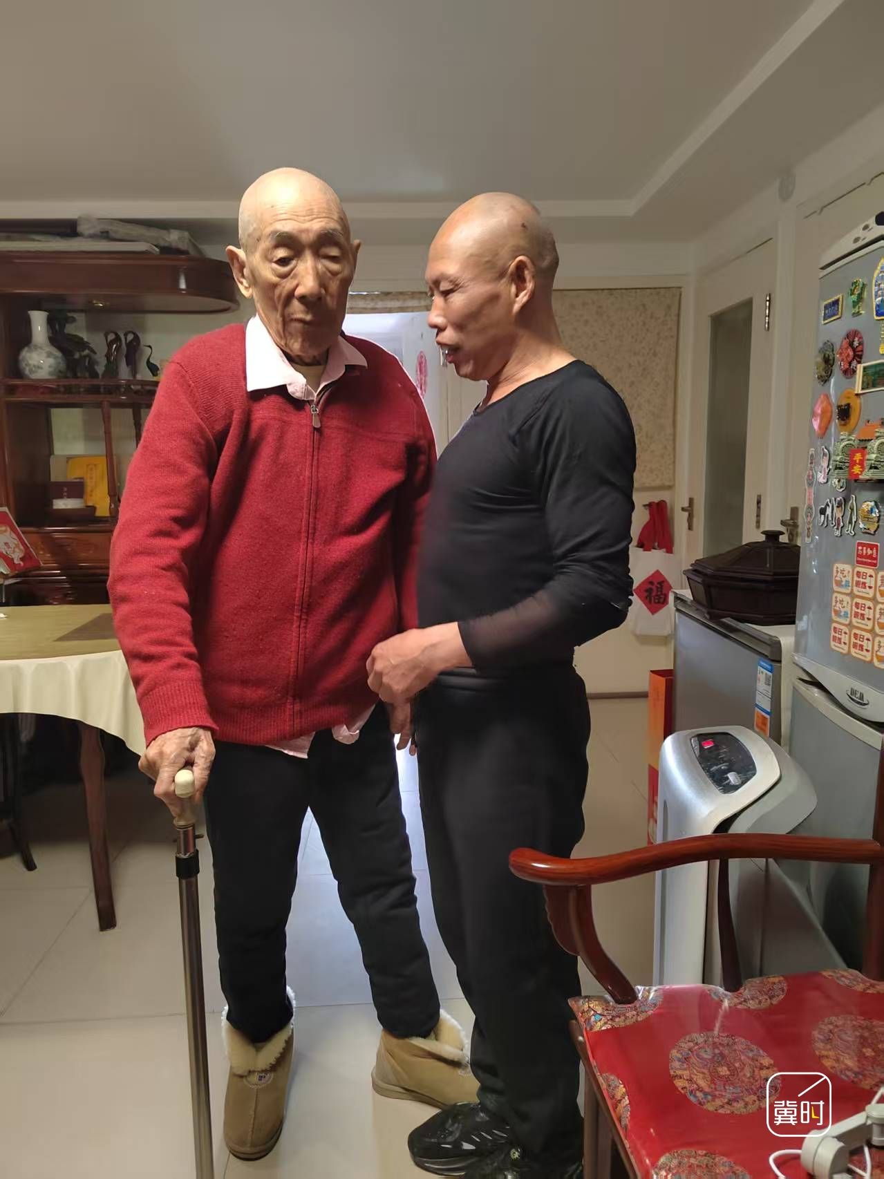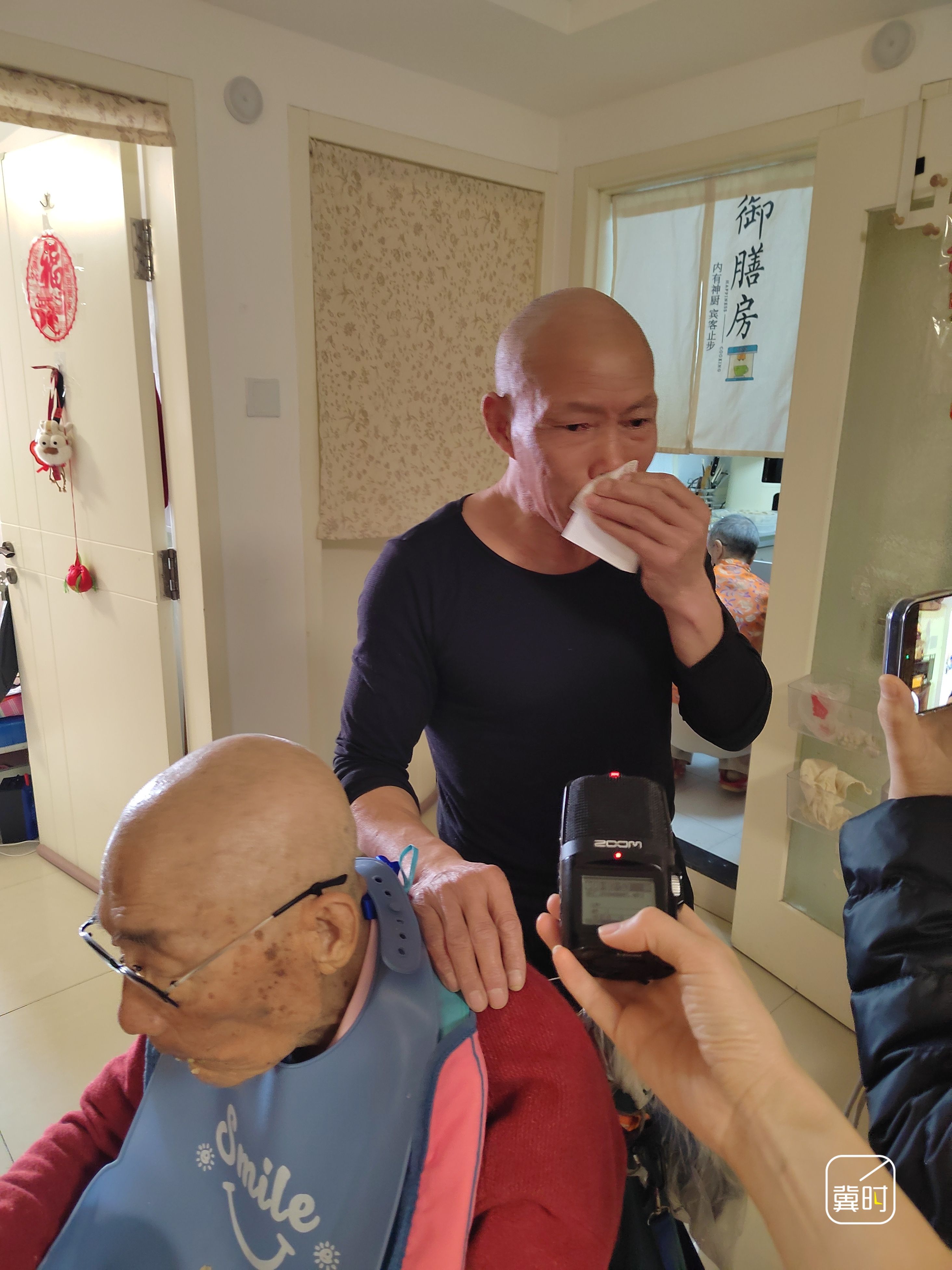 期間,有家政公司伸出橄欖枝想開高薪挖走朱增運。他斬釘截鐵地說,給多少錢也不走,要照顧老人到百年。在跟老人的簡短交流中,記者也能感受到他對朱師傅的依賴。