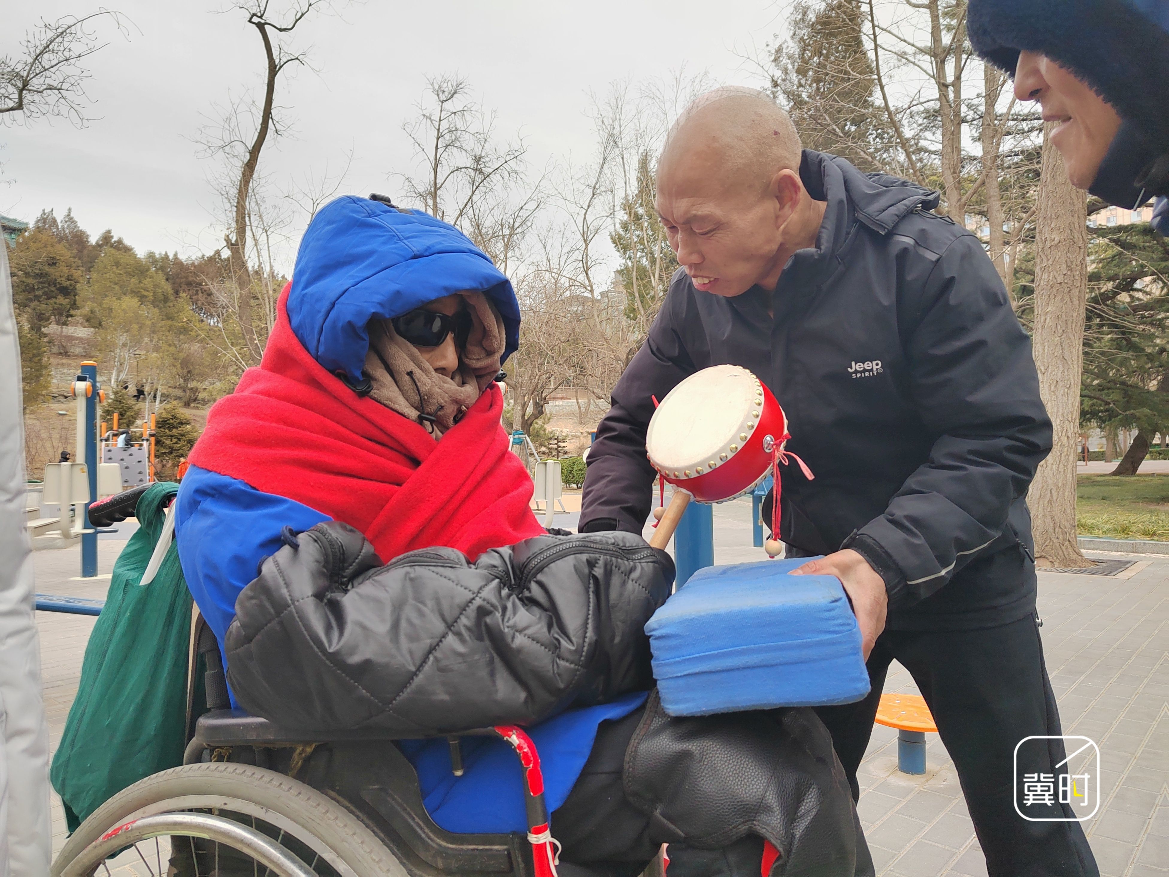 冬天,為避免老人感冒,從帽子到手套、再到護膝和護腳面的裝備,朱增運都自掏腰包給老人準備齊全。同時,畢家鳴也惦記朱增運和他的家人,會給他們添置高檔的羽絨服、鞋子等......多年來,兩家人的感情早已升格為彼此惦念的親人。