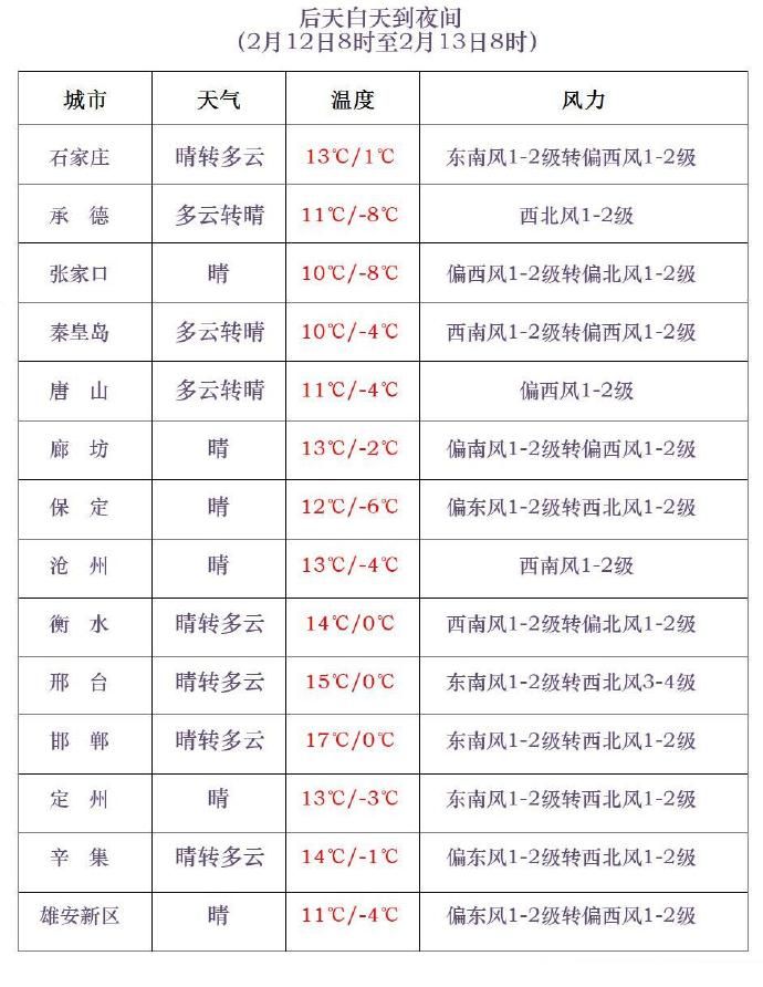 河北春運天氣預報