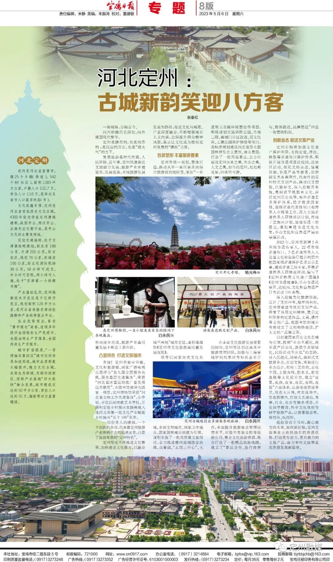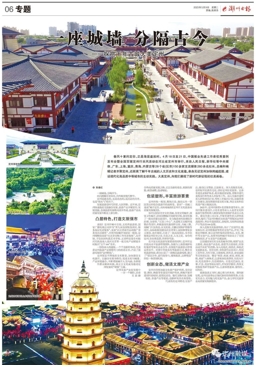 活動結束后,中國報業(yè)協(xié)會、中國報業(yè)協(xié)會全媒體發(fā)展研究中心舉辦了“定州杯”全國百媒定州行——“好稿件、好版面、好專題”征集活動,進一步發(fā)揮全國報人的傳播窗口作用,激發(fā)精品力作的示范引領效應,以更高的站位、更開闊的視野、更多樣的視角,宣傳、展示、推介定州市經(jīng)濟發(fā)展、生態(tài)保護、文化建設、鄉(xiāng)村振興等方面創(chuàng)新做法、典型經(jīng)驗,助力定州加快建設現(xiàn)代化高品質中等城市。