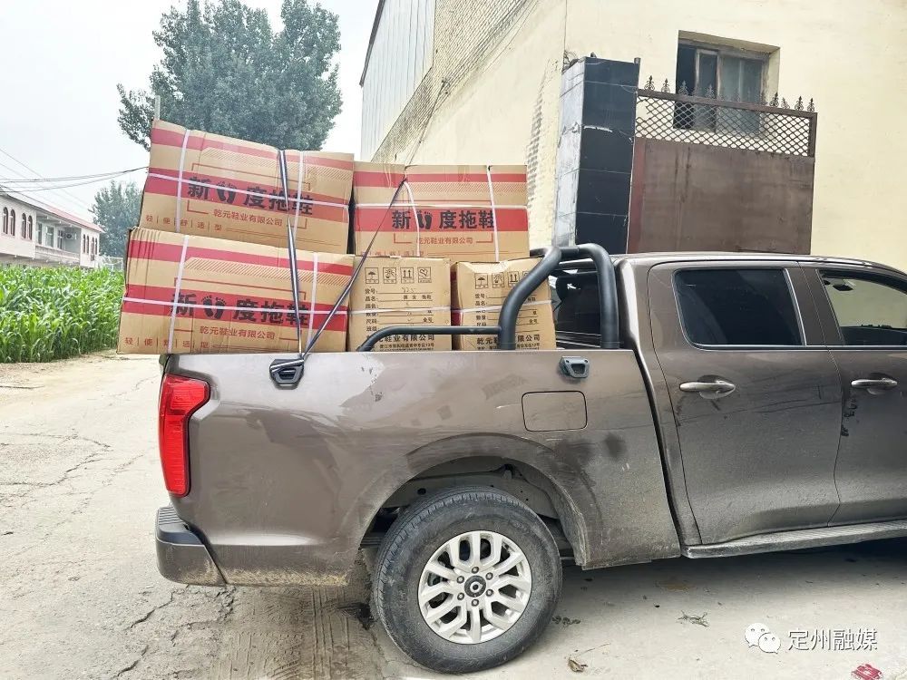 8月4日,王士永在定州無人機航拍協會群里看到網友的求助信息,得知涿州受災地區急缺拖鞋。“拖鞋!我這里有啊!”王士永經營的乾元鞋廠主要生產的就是拖鞋。想到自己廠里還有一些現貨,王士永與家人商量后聯系了貨車,將廠里全部的1200雙拖鞋捐了出去。此外,他還積極捐款,與定州無人機航拍協會共同捐贈了方便面、水、面包等愛心物資。