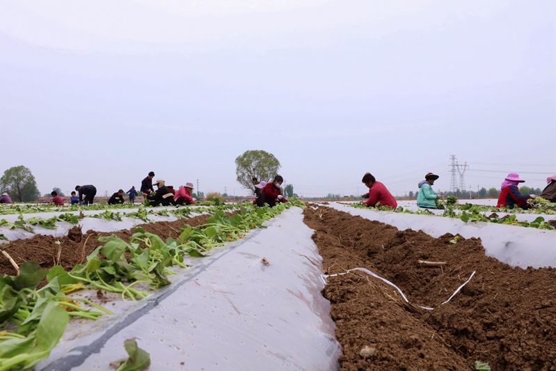 近日,河北省廊坊市安次區萬余畝紅薯的種植工作陸續展開,農民忙著栽秧、覆膜,田間地頭一派忙碌景象。