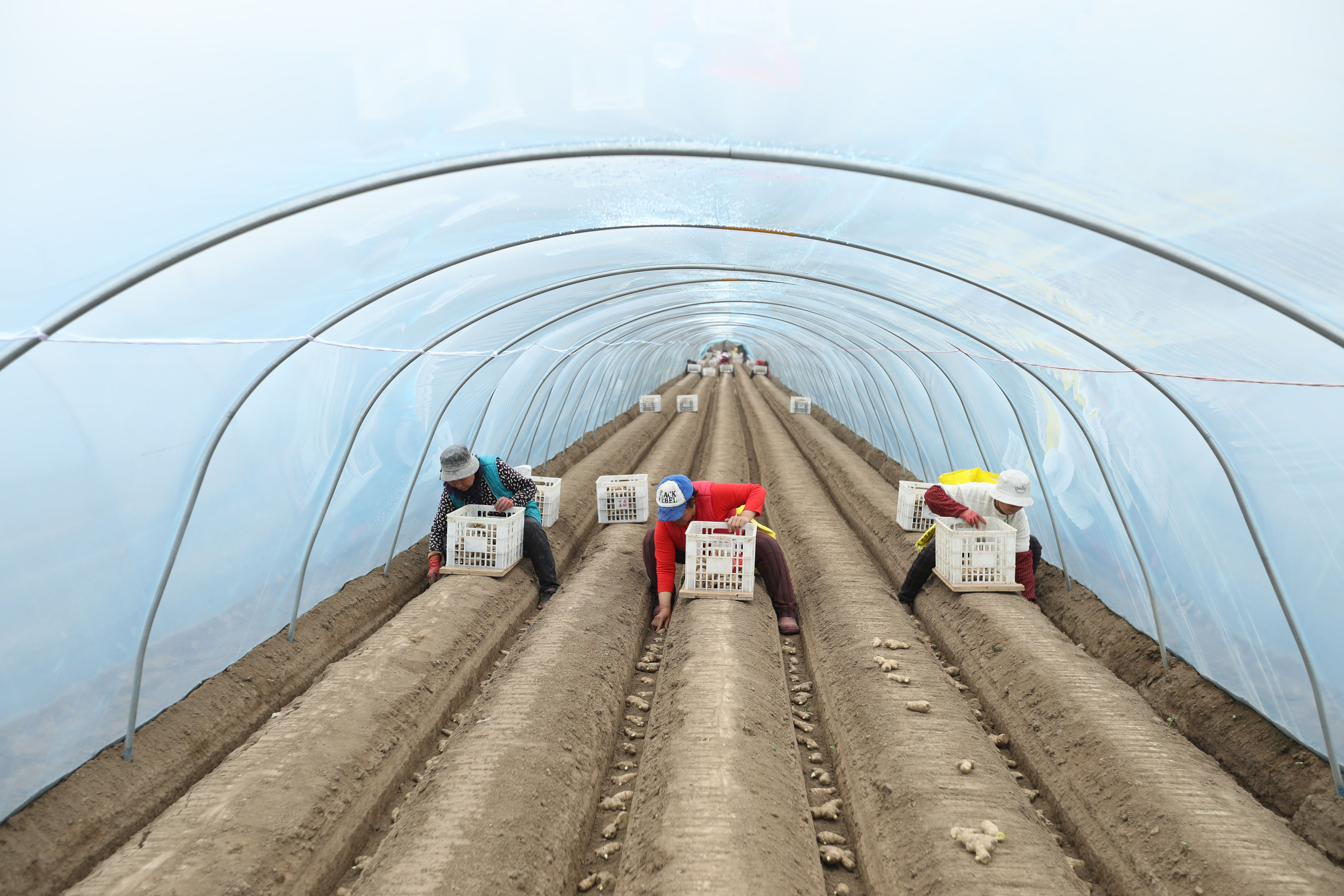 翻土、開溝、放姜、施肥、蓋土……近日,香河縣安頭屯鎮顧家屯村20余畝的生姜種植基地里,姜農們正在搶種生姜,一派“基地春耕種姜忙,村民務工錢袋壯”的熱鬧景象。