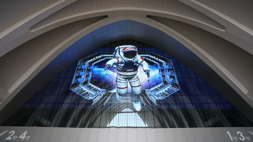 ↑廊坊臨空國際會展中心中央大廳光電玻璃幕墻。