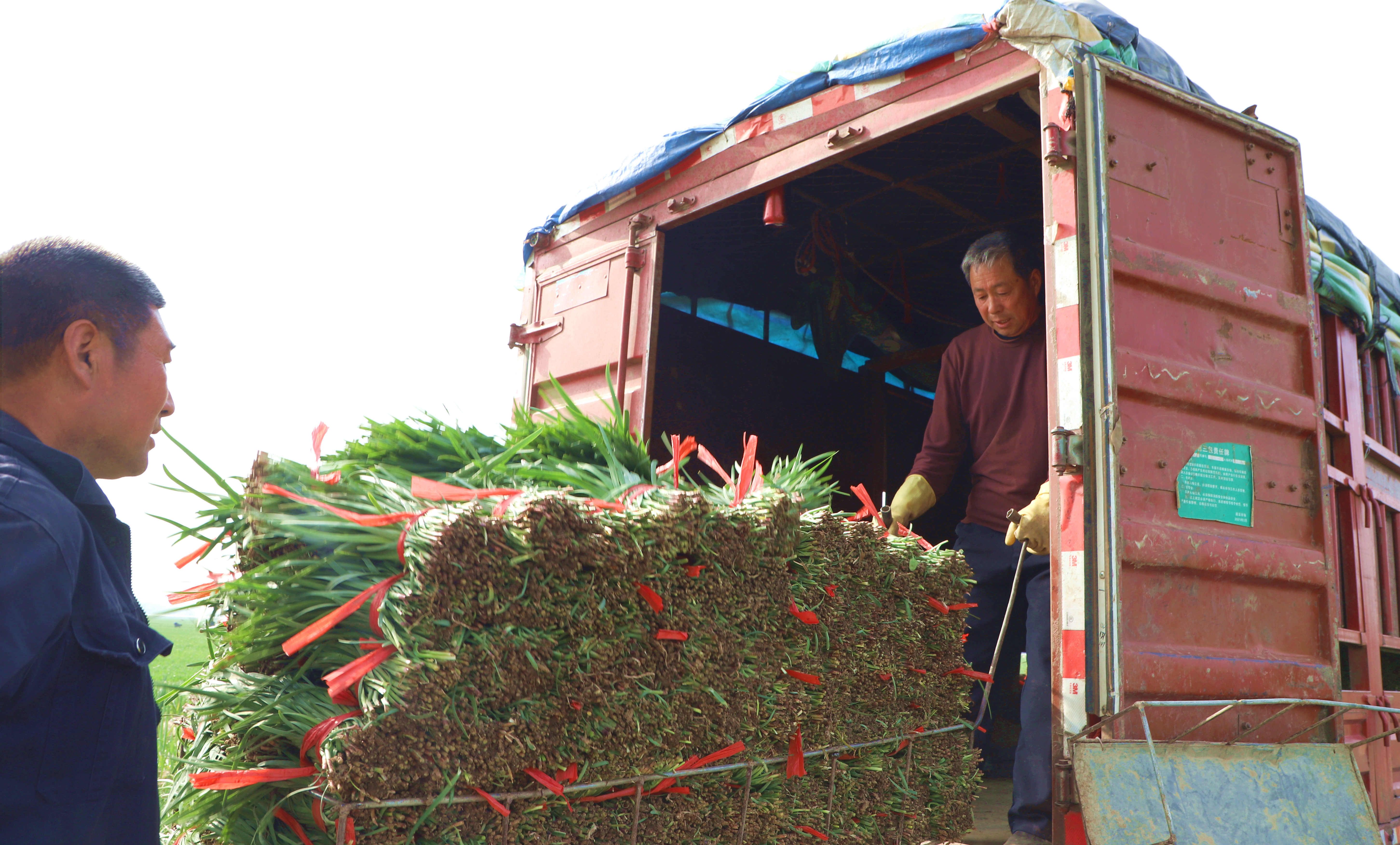 圖為在香河縣五百戶鎮霍劉趙村韭菜種植基地,菜農忙著將韭菜裝車準備銷往京津等地。通訊員 朱鈺爽 攝