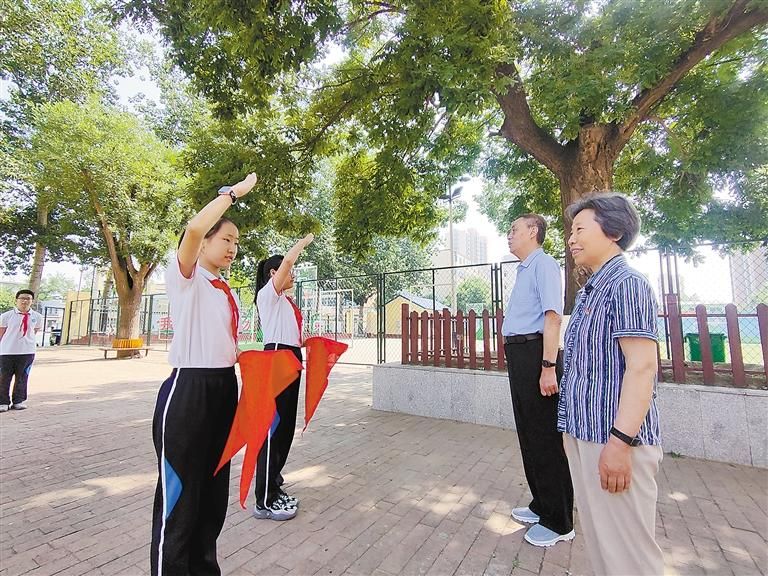 在兩位紅軍后代老同志講述紅色故事前,該校少先隊員為其佩戴紅領巾。隨后,他們參觀了市第一實驗小學校史館。五年級四班學生史韻涵告訴記者:“今天為兩位紅軍后代老同志介紹我校校史,我感到很光榮,他們很親切,分享的故事讓人印象深刻,我會把這些故事牢牢記在心中。”