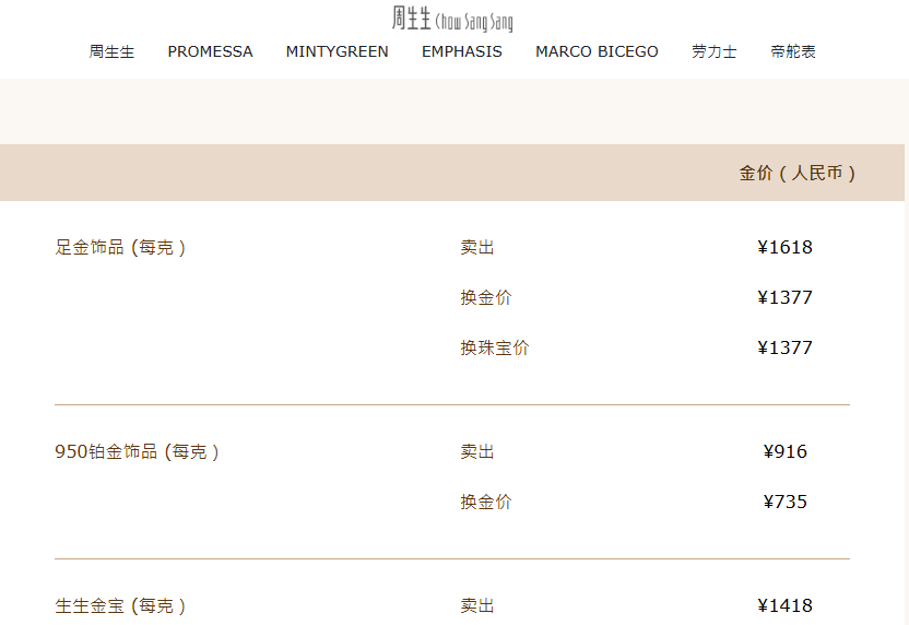 在過去幾天,現貨黃金價格經歷了“過山車”般的行情,受金價下跌影響,國內品牌金飾價格相應回調。