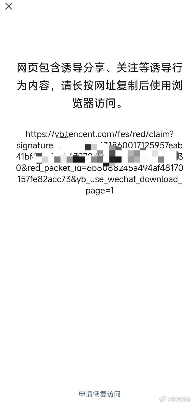 經研判,對元寶的違規(guī)鏈接進行處置,限制其在微信內直接打開。相關處置措施即日生效。
