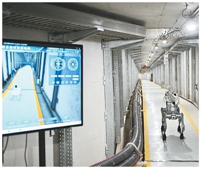 四足巡檢機器人在雄安新區雄東電纜隧道內巡檢。圖為新華社記者牟宇攝