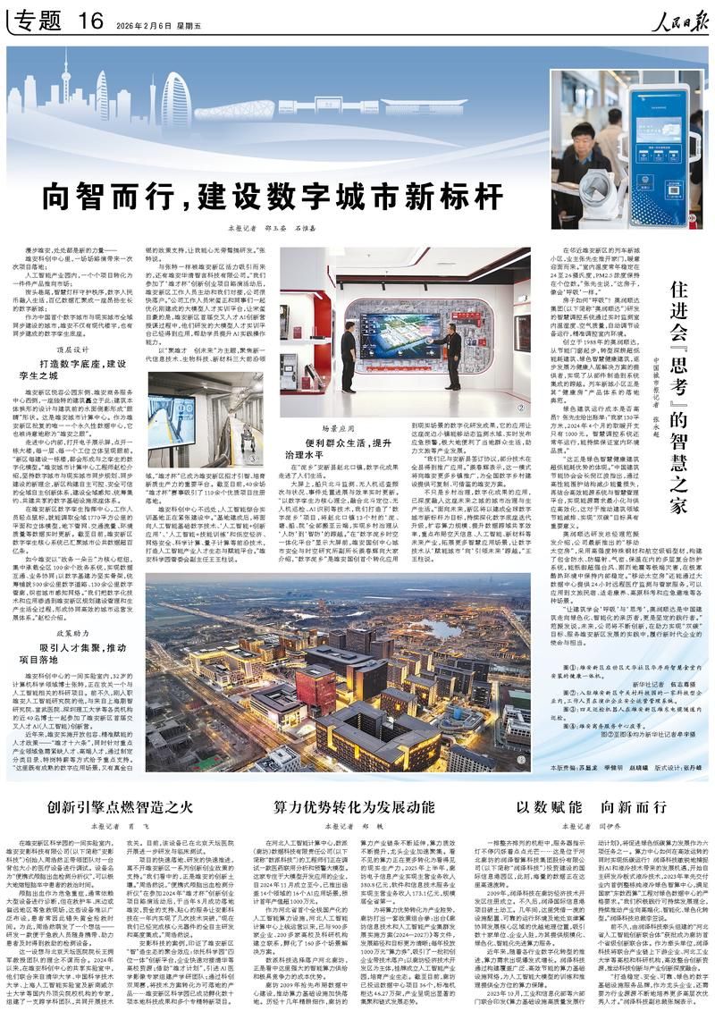 不只是鄉村治理,數字化成果的應用,已深度融入這座未來之城的城市治理與生產生活。“面向未來,新區將以建成全球數字城市新標桿為目標,持續深化數字底座迭代升級,擴容算力規模、提升數據跨域共享效率,重點布局空天信息、人工智能、新材料等未來產業,拓展更多智慧應用場景,讓數字技術從‘賦能城市’向‘引領未來’跨越。”王玉柱說。