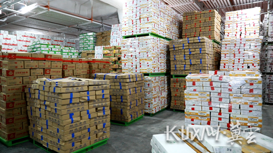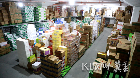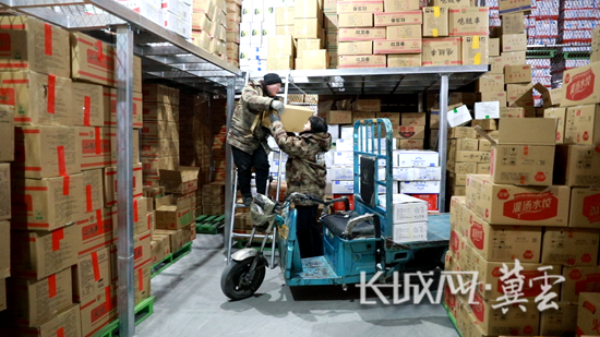 河北天環冷鏈物流有限公司展示中心商戶周麗為客戶備貨。長城網·冀云客戶端記者 張偉 攝