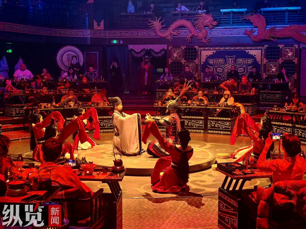 “每一支舞蹈的音樂和動作,都由國內知名老師編排,擁有自主版權,比如配樂就出自為《黑神話:悟空》創作音樂的丁培峰老師之手。”“趙都禮宴”運營總監溫云龍介紹。這里的核心創意是“一菜一典故,一宴一史詩”。當“女媧補天”落幕,一道用仿制邯鄲博物館文物酒樽盛裝的“五神湯”便端上桌;“完璧歸趙”之后,對應的是“琥珀炆玉環”。從餐具選擇到擺盤設計,每一處細節都透著巧思,藏著戰國文化的印記。