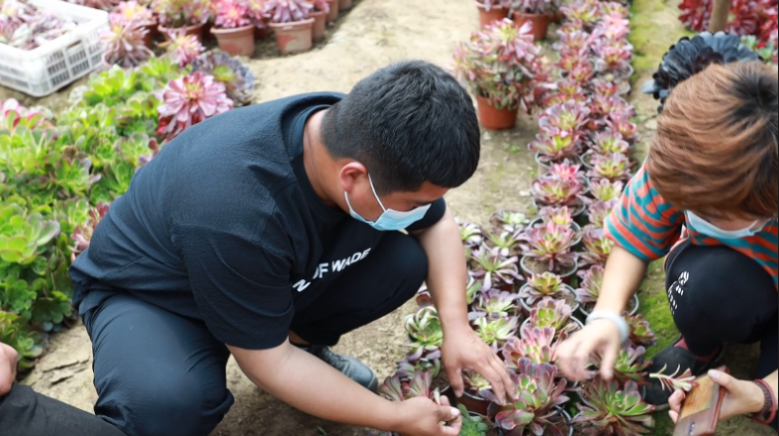 所以他開始帶著鄉親們一起種多肉