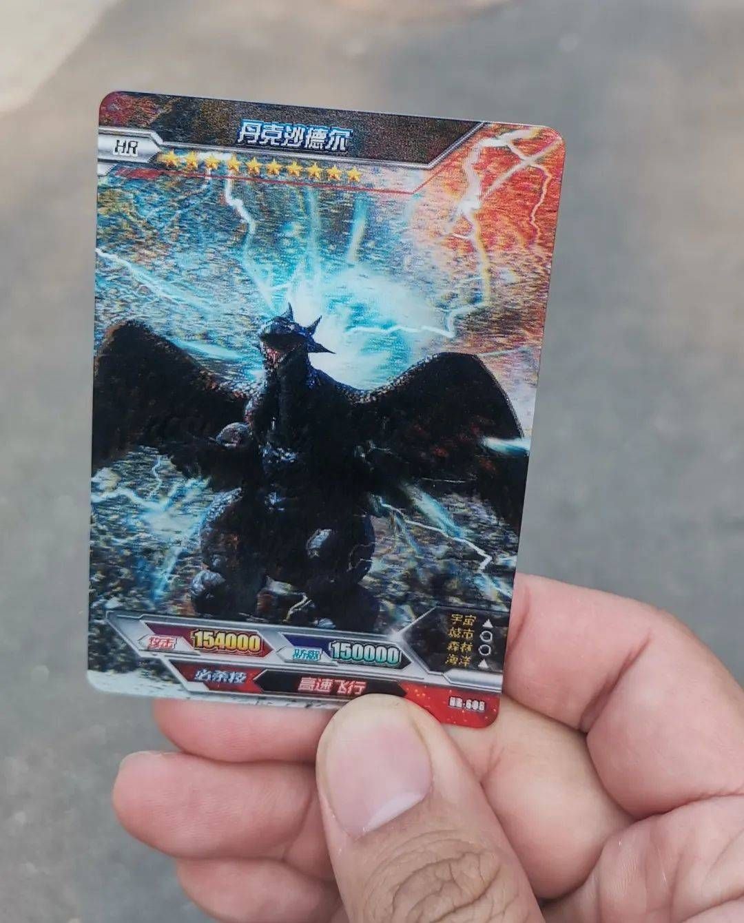 記者購買了兩包10元的奧特曼卡片,共得到10張卡片,其中一張被標注為“HR”等級,看上去與其他卡片不同,有明顯的3D立體效果,這就是吳姓小朋友口中的“電視卡”。