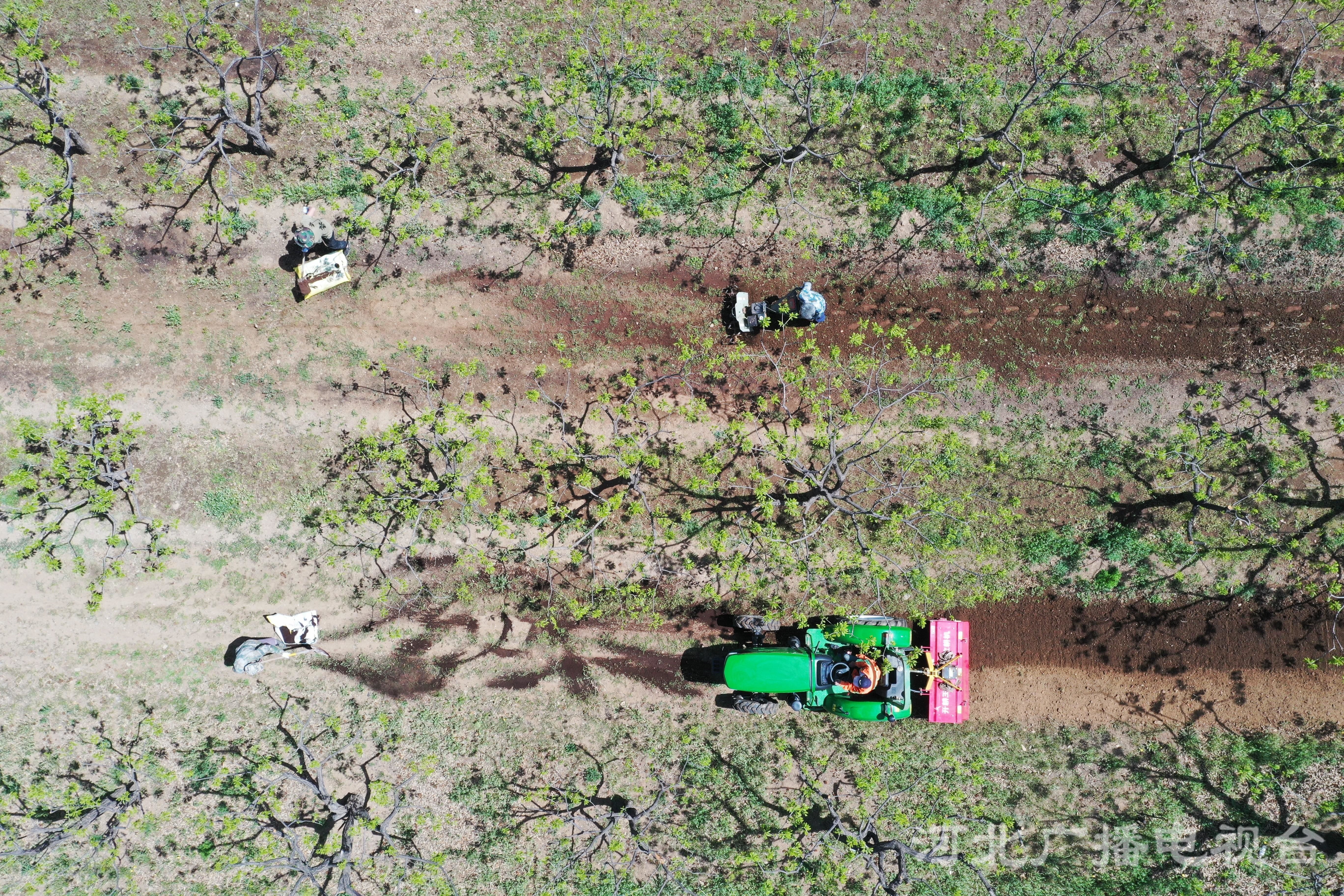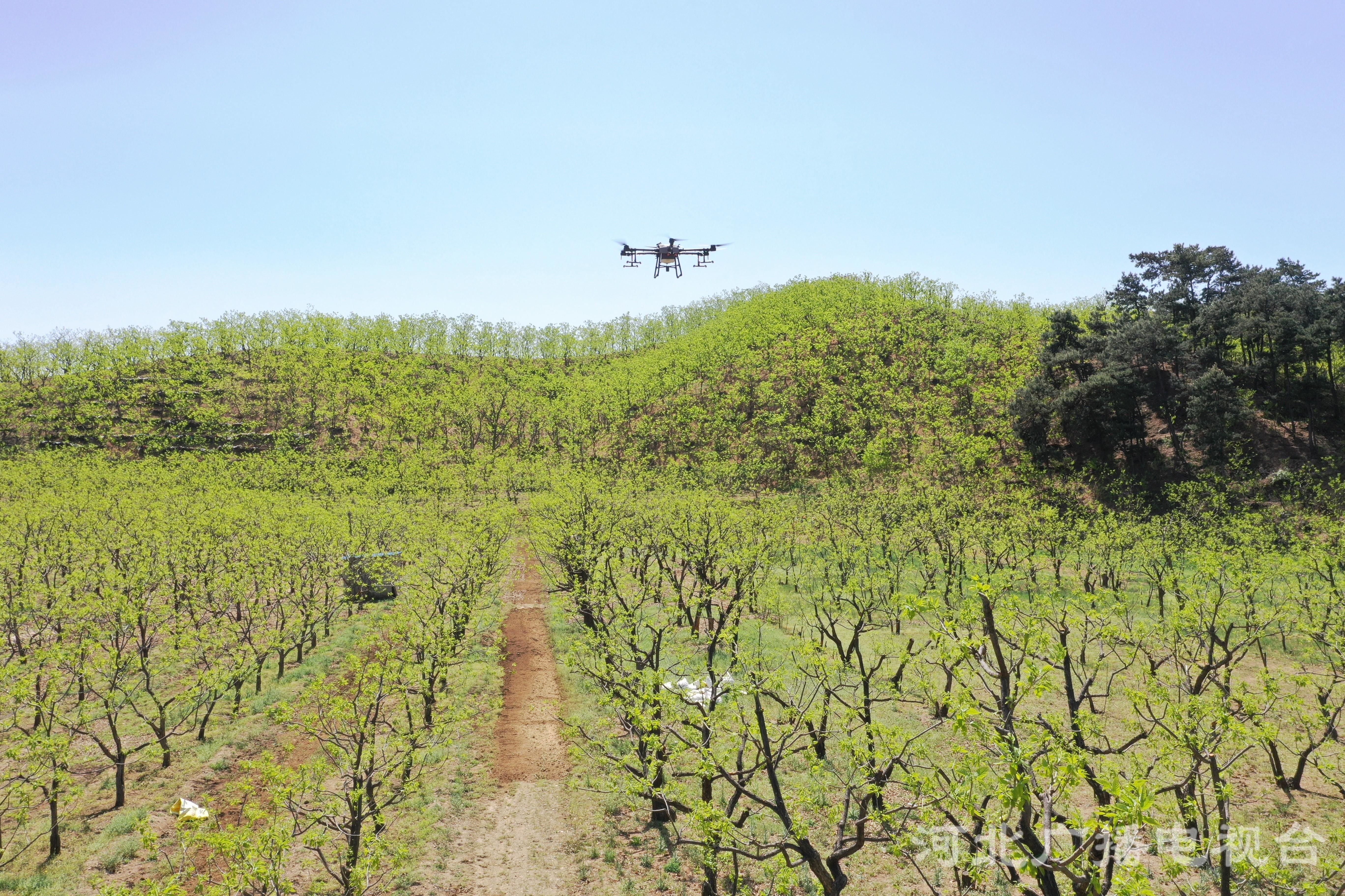 冀時客戶端報道 (河北臺 王建設 周鵬 通訊員 徐志剛)目前,正值春耕春播春管期。2022年4月26日,河北遵化市西下營滿族鄉雙義村工作人員用無人機和大型植保機械對栗樹進行病蟲害統防統治等作業,有效預防栗樹病蟲害發生、蔓延,從而達到增產增收。