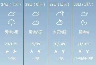 “五一”之前,石家莊市最高氣溫預計不會超過21℃,天氣陰沉,部分地區還會有小雨;29日到30日,全省自北向南有偏北風4到5級,陣風6到7級。預計“五一”期間,氣溫會快速回升。