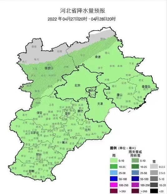 今天傍晚到夜間,張家口北部、承德北部陰有小雪,張家口中南部、保定西北部、承德西部陰有小到中雨或雨夾雪,滄州南部、衡水東部、邢臺東部、邯鄲東部陰,其他地區陰有小雨。