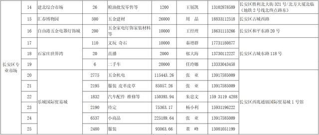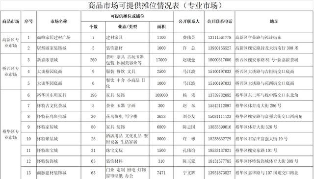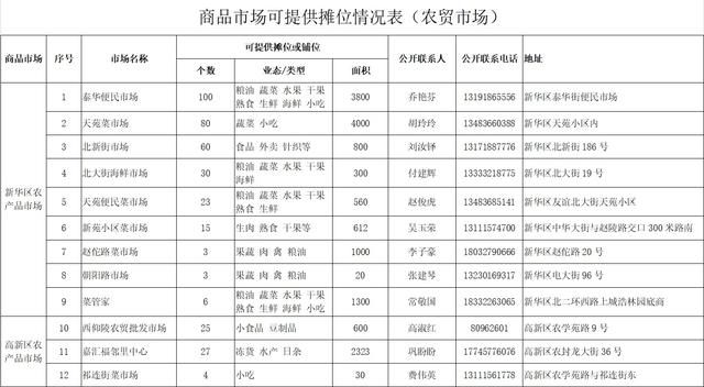 經認真疏理核實,目前具備承接商戶條件的規范專業市場、農貿市場等商品市場閑置攤位21291個,經營面積106.4萬平方米。其中,專業市場可提供攤位19651個,經營面積96.9萬平方米,業態涵蓋裝飾材料、小商品、日化、五金、服裝、餐飲、家居建材、汽車裝具等;農貿市場、菜市場可提供攤位1640個,經營面積9.5萬平方米。