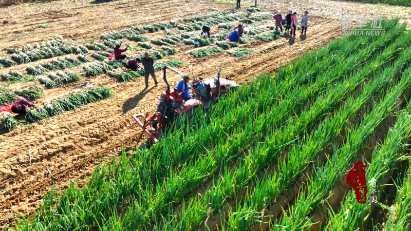近日,在河北省石家莊市靈壽縣東岔頭村大蔥種植基地,伴隨著起蔥機(jī)器的轟鳴聲,幾十名村民熟練地收蔥、捆扎、搬運(yùn),田間處處洋溢著豐收的喜悅。