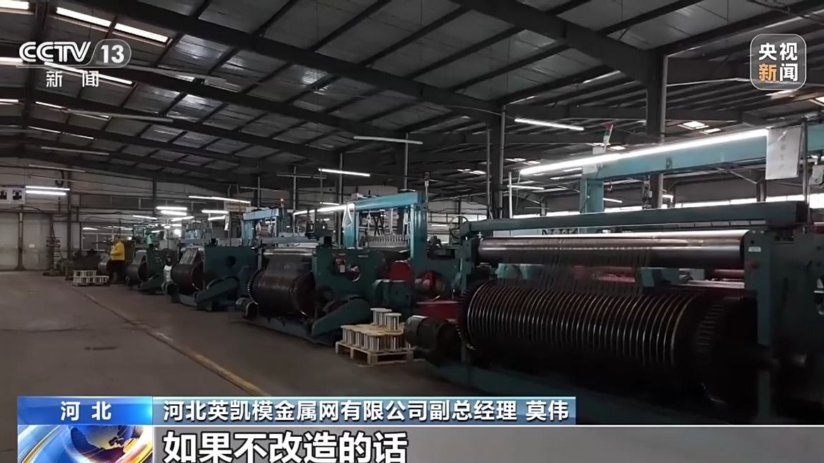 河北英凱模金屬網有限公司副總經理 莫偉:這個機型已經40多年了。如果不改造的話,有一些高水平的訂單有可能都吃不下、不敢接。